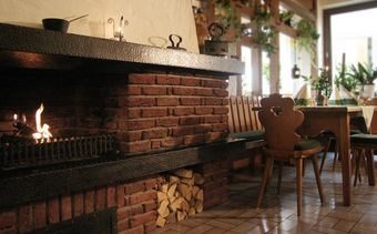 Rustic area with open fireplace